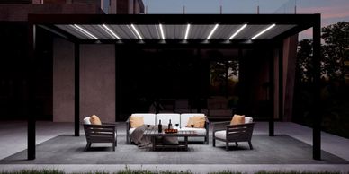 TheMB-OpenSky 120pergola is equipped with a fully electric roof control mechanism, completely concealed within the system's structure, further enhancing the aesthetic value of the entire construction. Control can be performed using a remote control, switch, mobile application, or through a programmed scenario in a home control center. Additionally, the pergola can be equipped with various accessories such as wind, rain, or sun sensors, significantly enhancing the user's comfort. By using side covers, it is possible to fully integrate the pergola with the roof control system, allowing control through a single device.